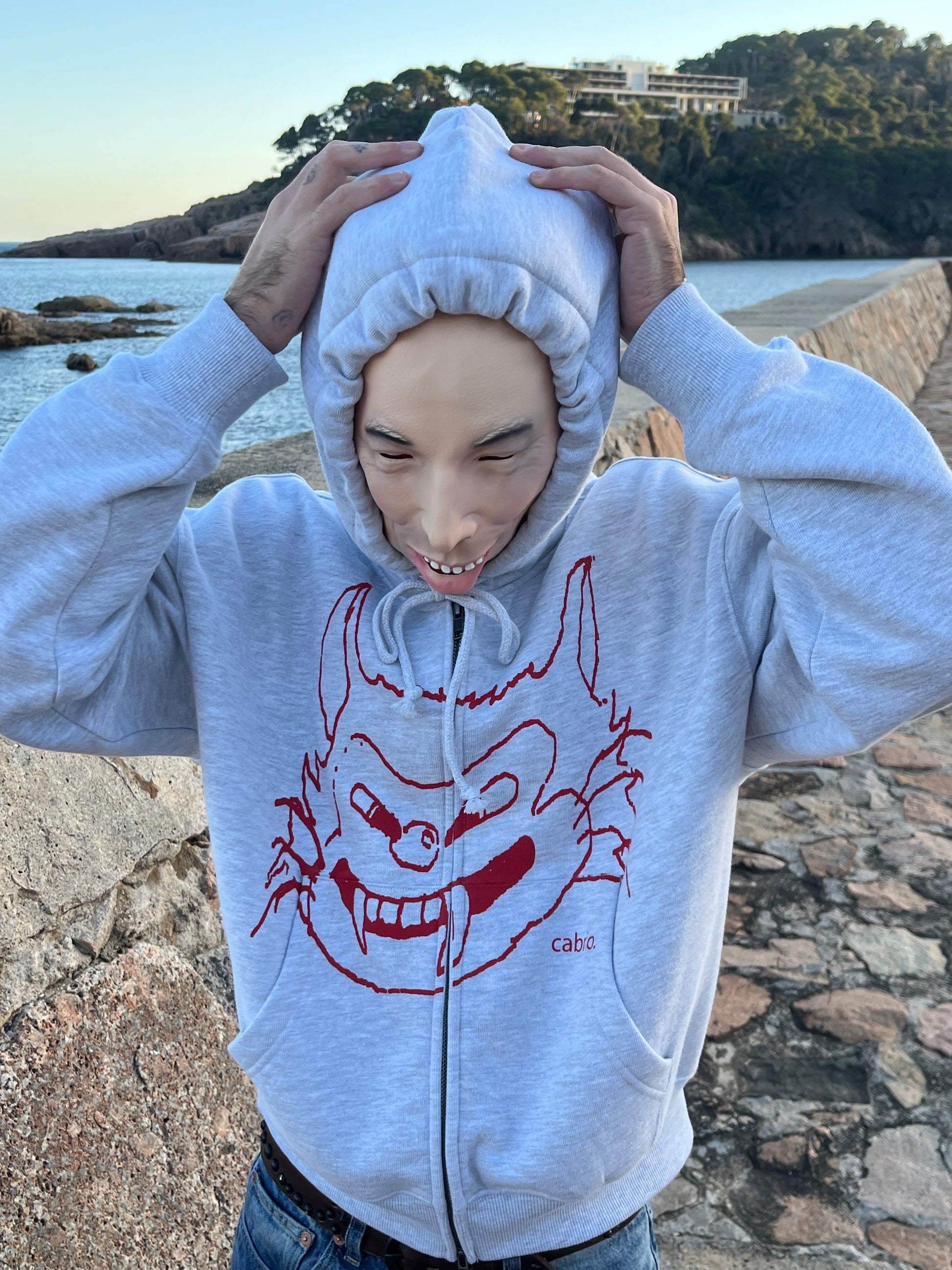Da Cat Zip Hoodie Grey Melange
